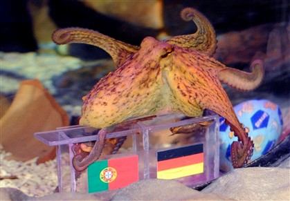 Mais um marco da lusomediocridade. Os alemães inventaram uma merda, essa merda tinha um nadinha de graça, que se esgotou rapidamente, que o polvo Paul a meio do mundial 2010 já metia nojo, e eis que dois anos depois, quando a piada já está totalmente gasta, lá vamos nós imitar. Oh, raio de país.